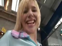 Naughty blond young gf Gabriel gives blowjob