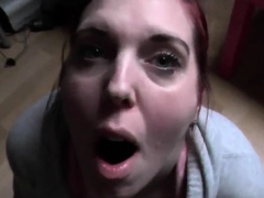 Submissive Girl in Red Lipstick Gives a POV Blowjob