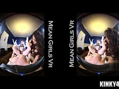 Feisty kittens bang the biggest belt cocks and spray semen e