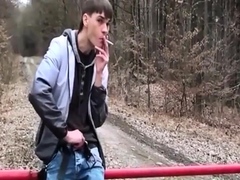 Twink Strokes His Dick Outdoors